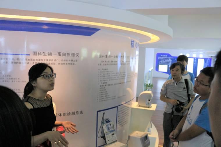 圖為安徽國科生物科技有限公司負責人向團隊成員及指導(dǎo)老師介紹公司先進的科技產(chǎn)品和已經(jīng)取得的成績。通訊員彭文婷攝